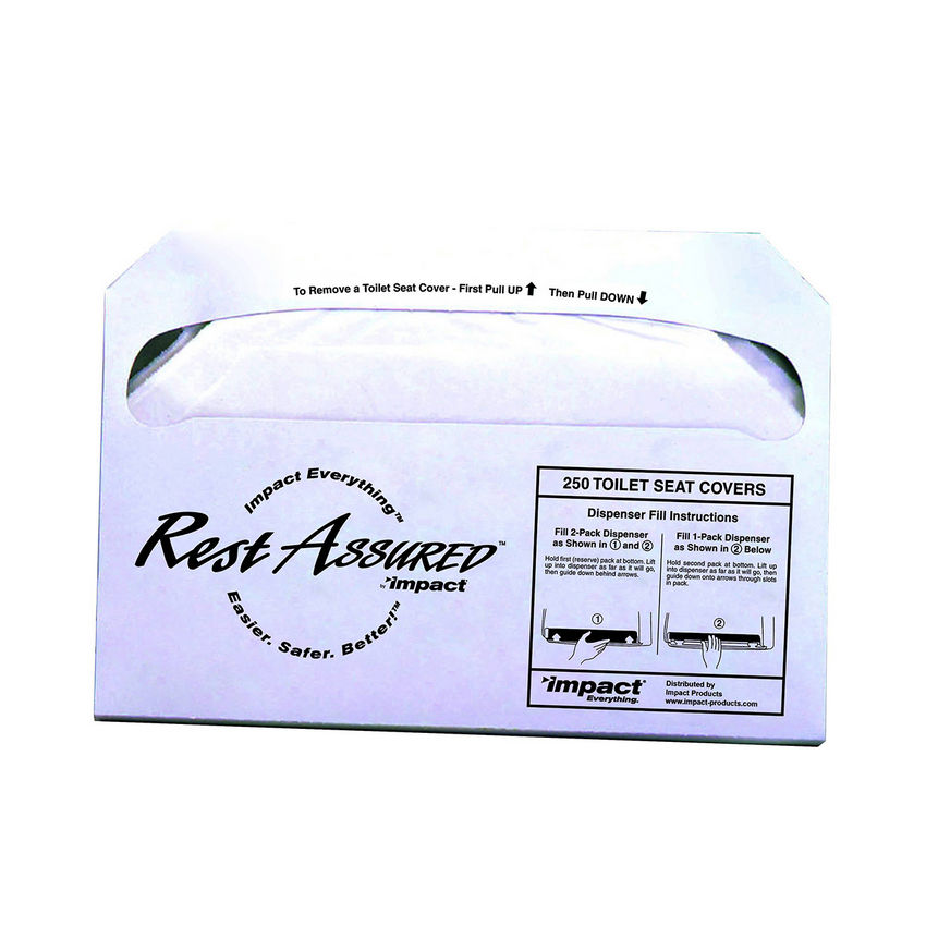 These toilet seat covers provide protection and fit a variety of dispensers.Creates a protective barrier between toilet seat and user.Half fold paper toilet seat covers.Seat covers made of 100% recycled, with minimum 30% post consumer waste.100% biodegradableLever Dispensed Seat Cover #25188173 designed to fit in lever type dispensers.Packed: 20 sleeves of 250; 5000/Cs.Size: 10 1/2" H X 15" W X 1" DColor: WhiteDispensers: #25131900 and #25132000